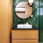 - ❓Is there a kitchen available at the apartment for guest use?Yes, the apartment is furnished with a kitchen and offers an electric kettle, a fridge, and kitchenware as well.